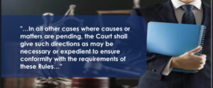 “(2) In all other cases where causes or matters are pending, the Court shall give such directions as may be necessary or expedient to ensure conformity with the requirements of these Rules.